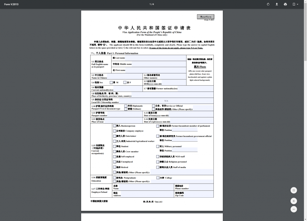 洛杉矶和休斯顿领事馆只能使用以上洛杉矶版本的中国签证申请表。